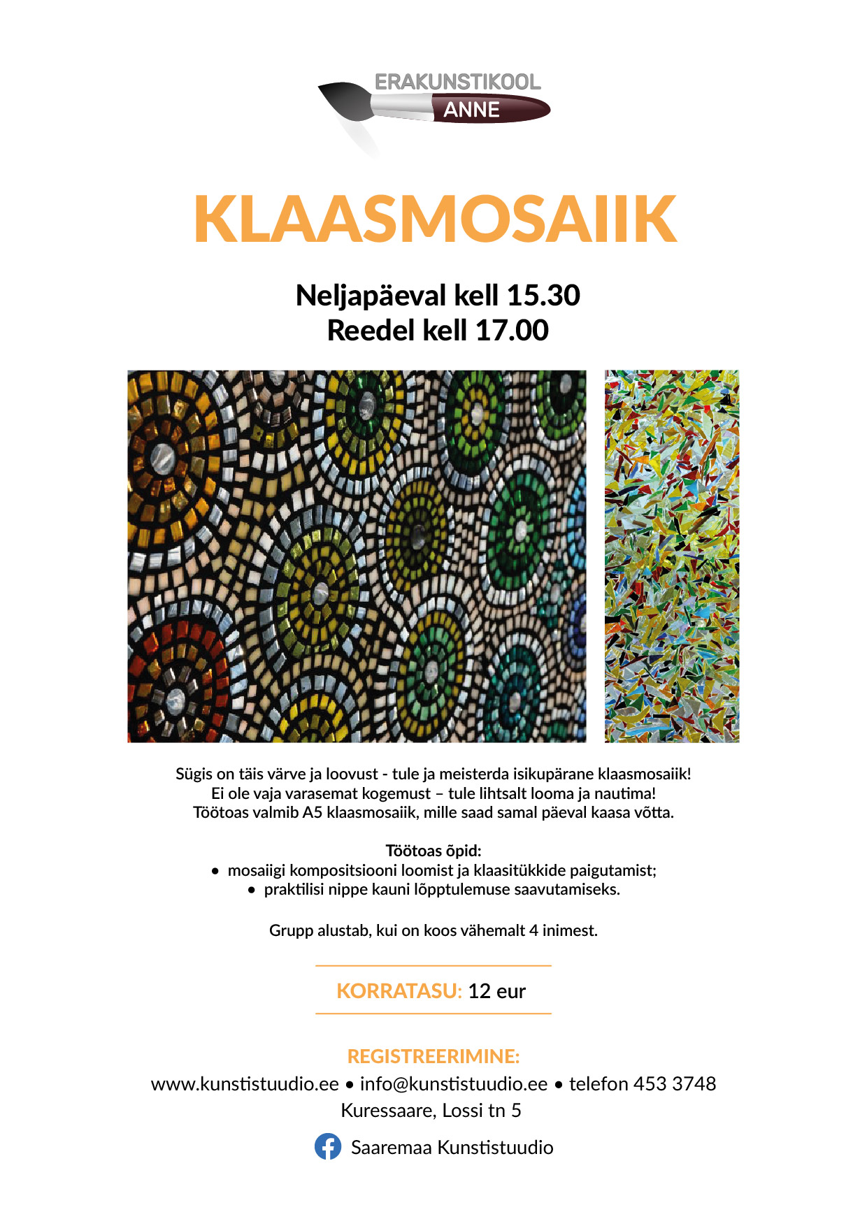 Töötoas valmib A5 mõõdus klaasmosaiik, mille saad juba samal päeval kaasa võtta.